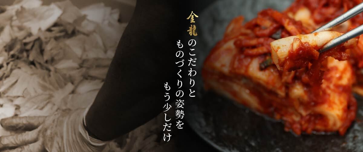 すべて手造りにこだわった白菜キムチ。国内産の厳選した白菜をひとつひとつ丁寧に塩漬けしました。ヤンニョムはフルーツの素材の甘みと厳選した二種類の唐辛子をブレンドし、秘伝の調合で仕上げました。白菜キムチと自家製ヤンニョムを詰め合わせました。お好みの野菜やお肉と煮込めば、金龍キムチ鍋がお手軽に楽しめます。 【原材料】 白菜、大根、にんにく、ねぎ、ニラ、漬原材料(砂糖、食塩、唐辛子粉、醸造酢、いかの塩辛、りんご、白桃)酸味料、調味料(アミノ酸等)、酸化防止剤(V・C)(一部に小麦、大豆、いか、りんご、ももを含む)