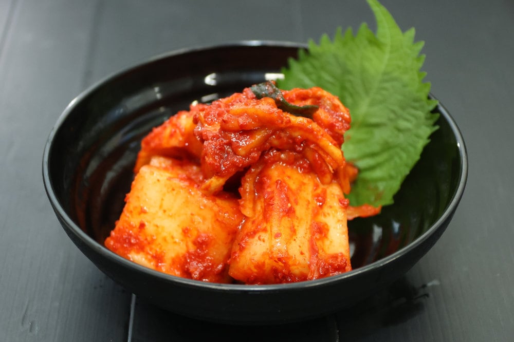 すべて手造りにこだわった割干しキムチ。太い割干し大根を水に戻してから重石でちょうど良いコリコリした食感にしました。ヤンニョムはフルーツの素材の甘みと厳選した二種類の唐辛子をブレンドし、秘伝の調合で仕上げました。食感の良い割干し大根にヤンニョムを塗り込んだ割干しキムチ。