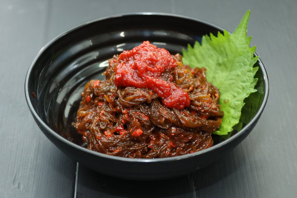 石垣島産の太もずくを直送で仕入れ、キムチペーストに絡めたキムチ。もずくは食感が良く、ヘルシーキムチ。